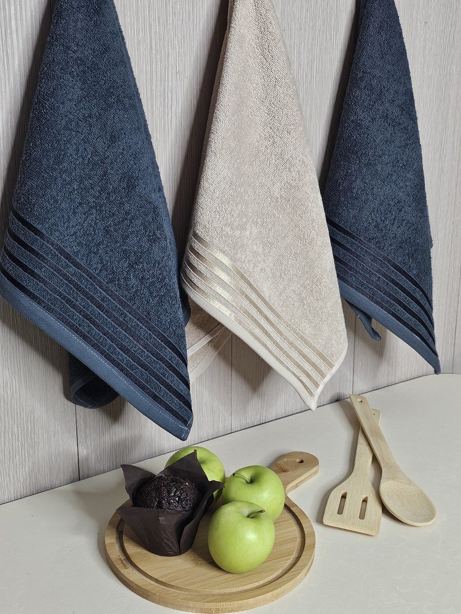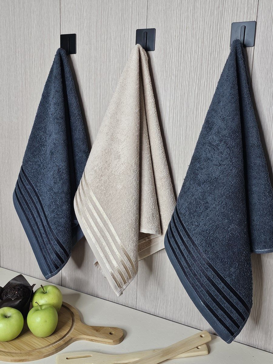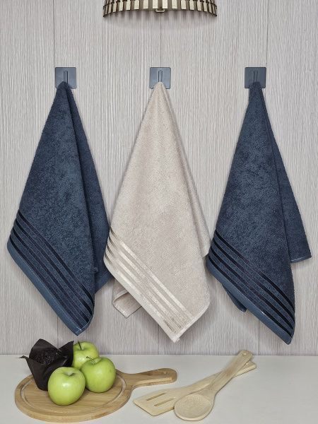 Набор махровых полотенец 3 шт (40*70) т.сер, беж, т.сер, полоса