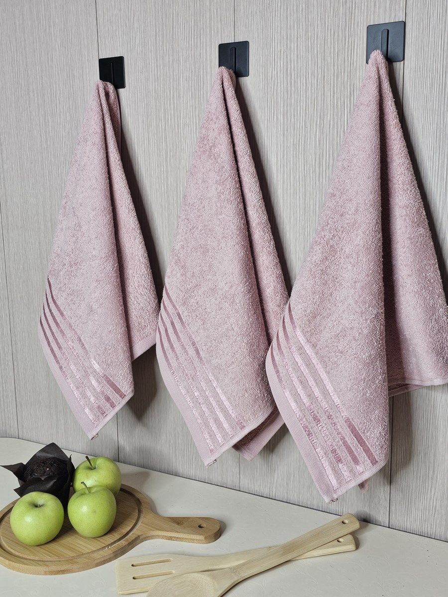 Набор махровых полотенец 3 шт (40*70) розовый, полоса Npol/8887
