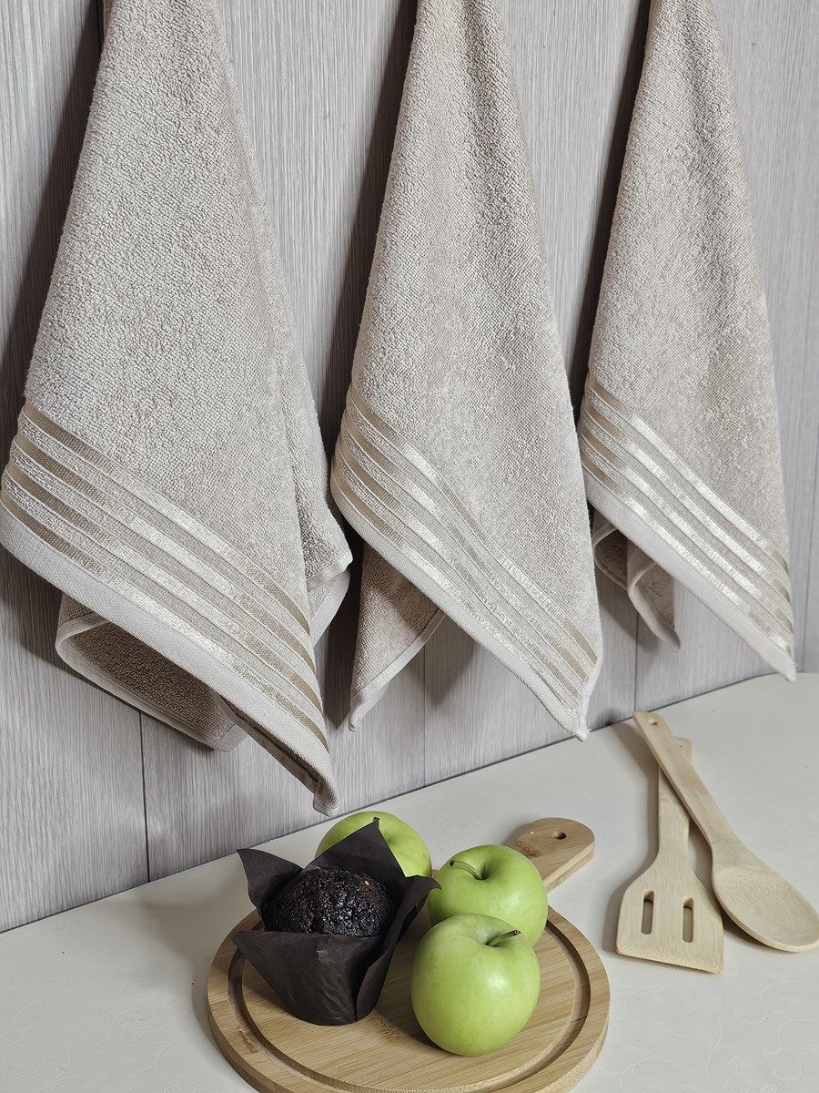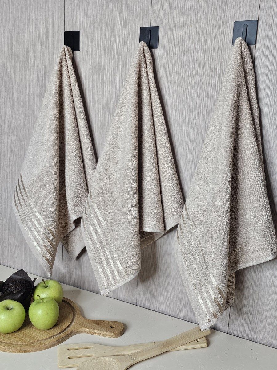 Набор махровых полотенец 3 шт (40*70) бежевый, полоса