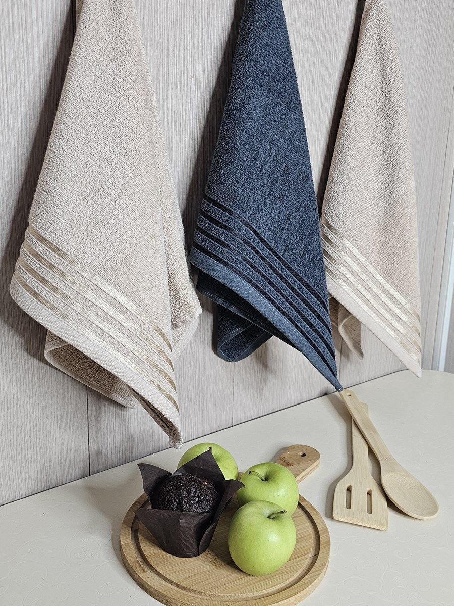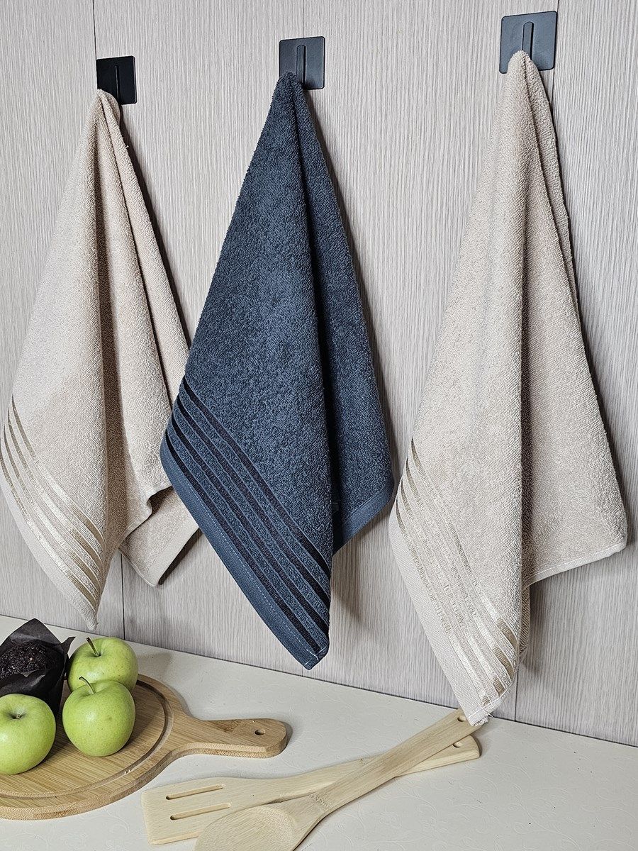 Набор махровых полотенец 3 шт (40*70) беж, т.сер, беж, полоса