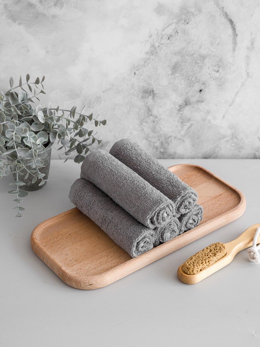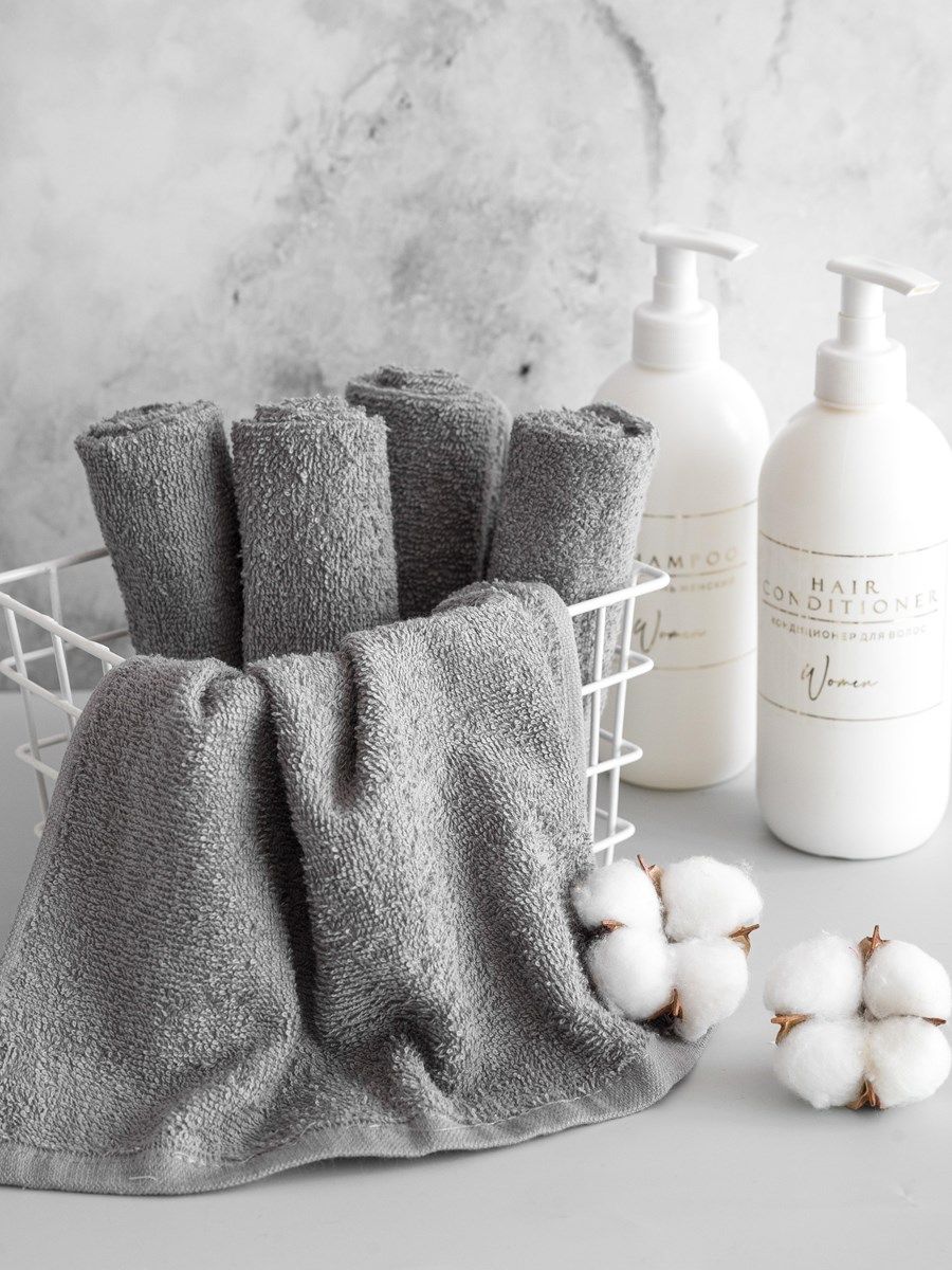 Набор махровых салфеток 5 шт ( 30*30 ) темно-серый, с петелькой