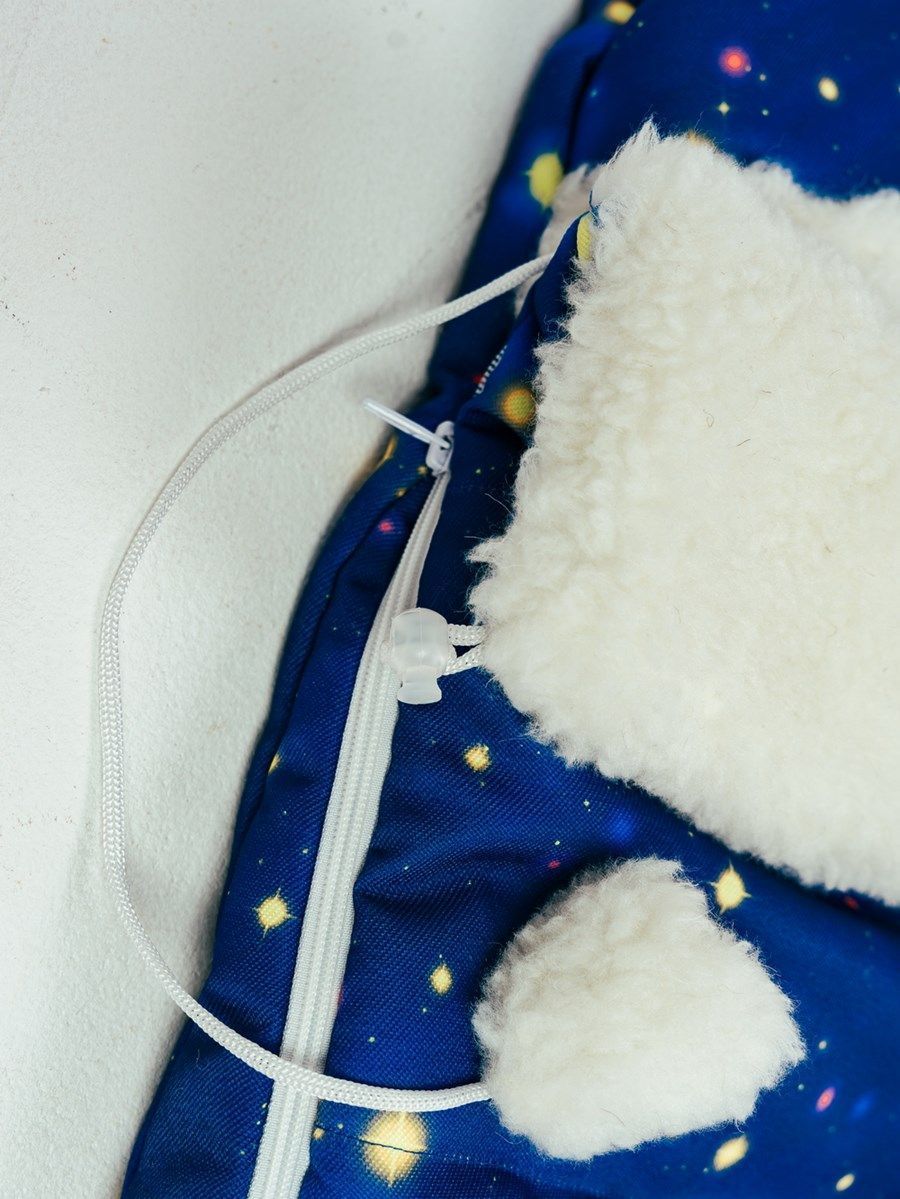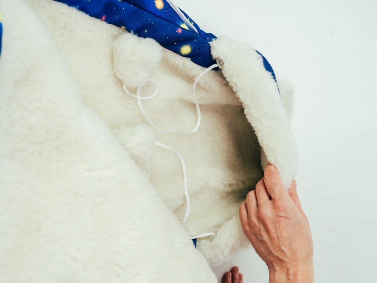 Конверт изготовлен из меха, что делает его идеальным выбором для защиты вашего малыша от холода. Ткань, используемая для его пошива, представляет собой рогожку с влагозащитной пропиткой, изготовленную из 100% полиэстера. Мех, входящий в состав конверта, состоит из 50% шерсти и 50% полиэстера, что обеспечивает его долговечность и практичность.