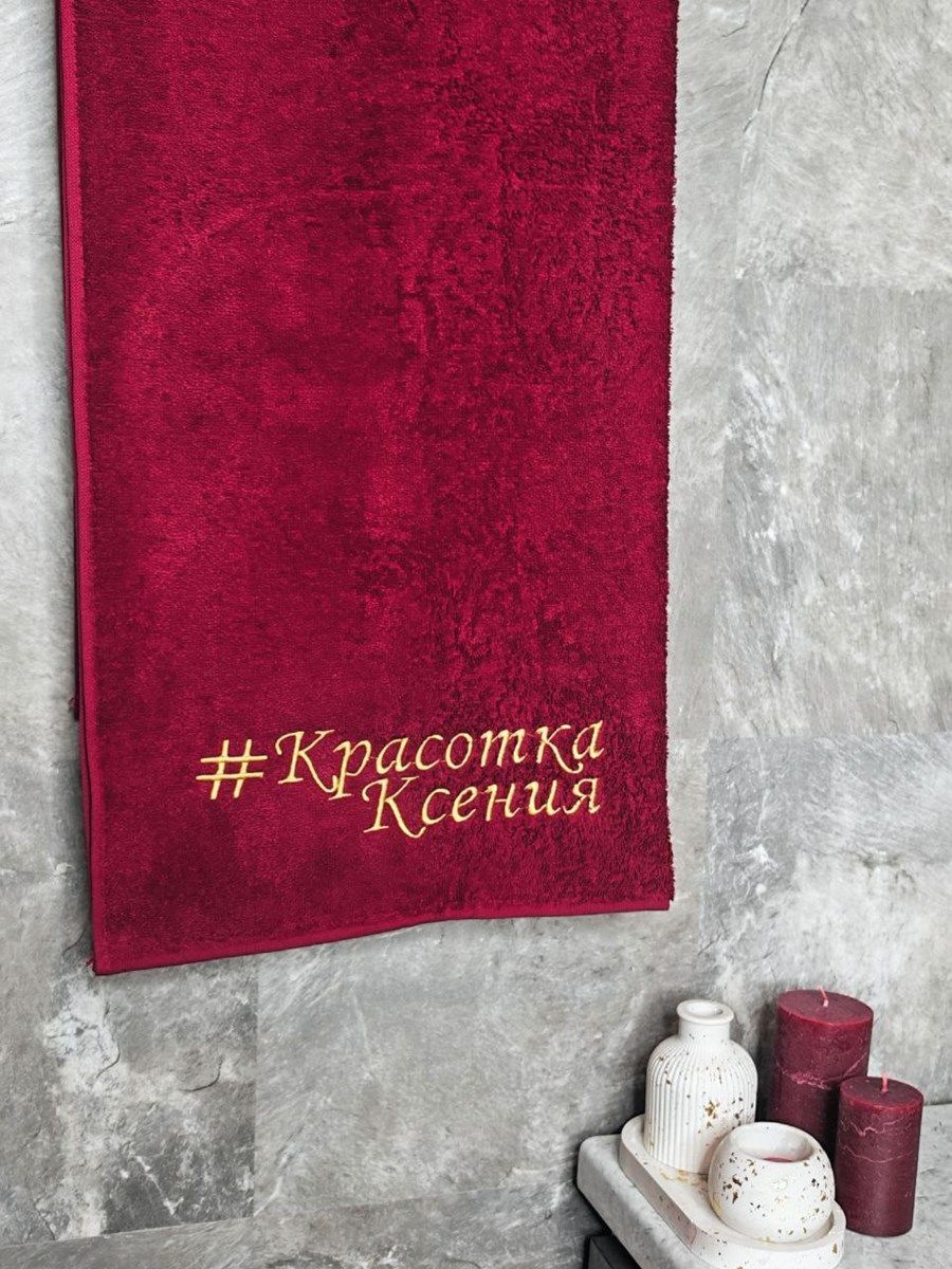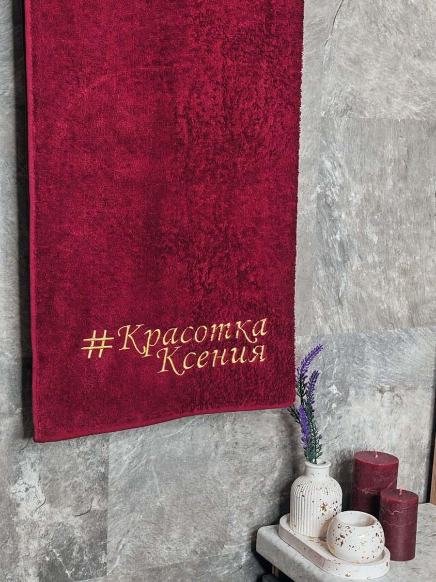 Полотенце с вышивкой 70*140 "Красотка Ксения" бордо