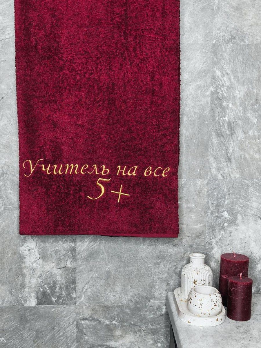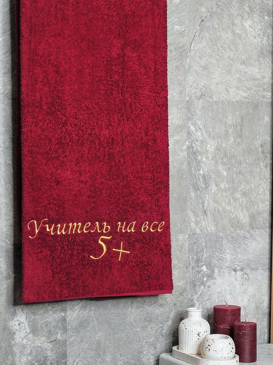 Полотенце с вышивкой 70*140 "Учитель 5+" бордо